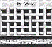 Twill weave: Each weft wire passes over two and under two warp wires, and each warp wire passes over and under two weft wires. The wire diameter for both(warp and weft)is mostly the same. Characteristics: square aperture, less rigid than plain weave, especially suitable for deforming, strong wire cloth due to ratio of wire diameter and aperture, it is mostly used for filtration less than 63 micron. |