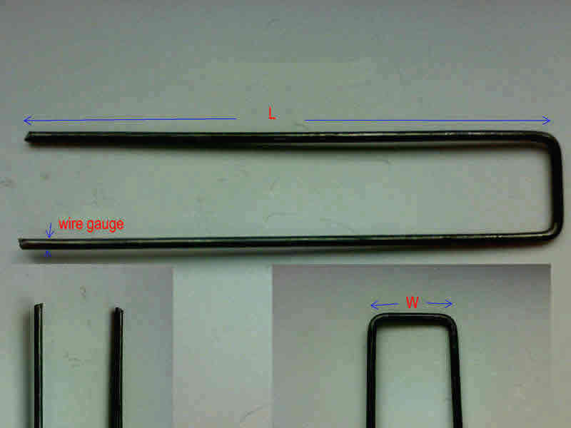 We manufacture U staples using 6 - 12 gauge normal steel wire and 11 gauge, 8 gauge galvanized steel wire.