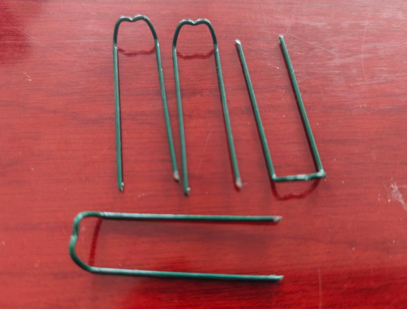 Mossing pegs (also is known as 'German pins'). Used for pinning moss onto foam bases, e.g for wreath making, pomanders or topiary 'trees' or for securing ribbon into foam.